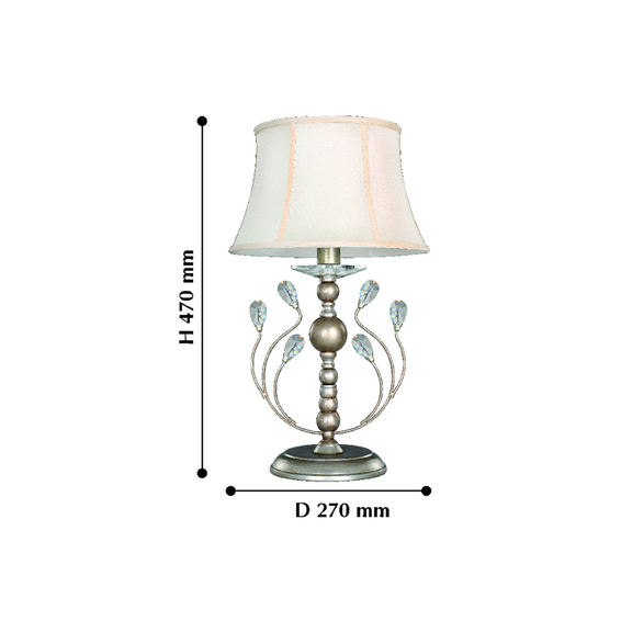 Каркас изготовлен из металла, окрашенного в цвет античное серебро, абажуры из светло-кремовой ткани, хрусталь высшего качества.
