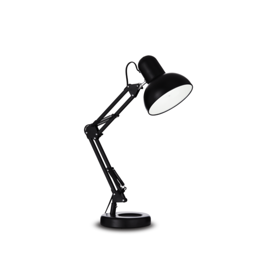 Техническая лампа из металла белой или матовой чёрной краски. Подвижный рожок балансируется пружинами. Регулируемый рассеиватель.