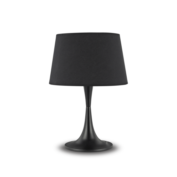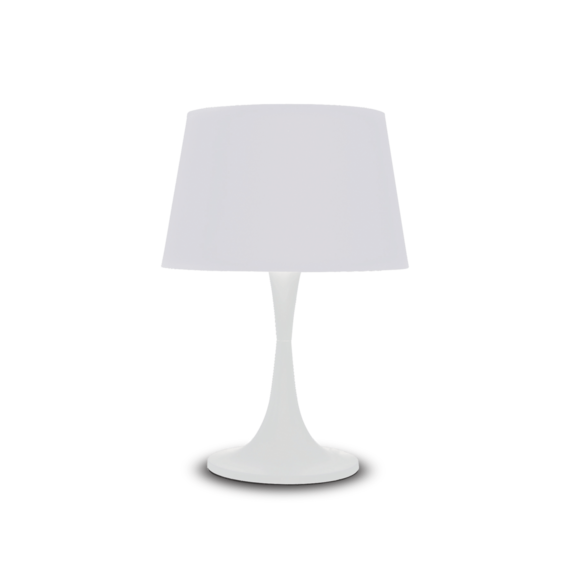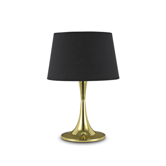 Арматура из металла в цвете латуни или матовой белой - LONDON TL1 SMALL код 110530 - и чёрной -LONDON TL1 SMALL код 110530 - красках. Абажур из материала ПВХ покрыт тканью.
