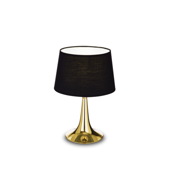 Арматура из металла в цвете латуни или матовой белой - LONDON TL1 BIG код 110448 - и чёрной - LONDON TL1 BIG код 110455 - красках. Абажур из материала ПВХ покрыт тканью.
