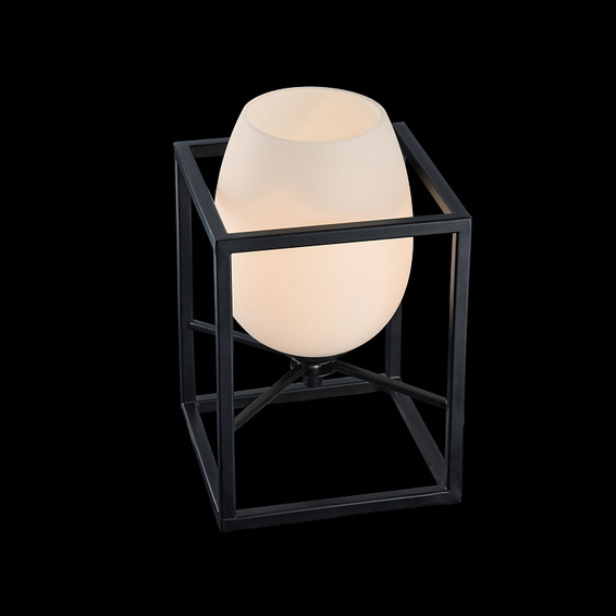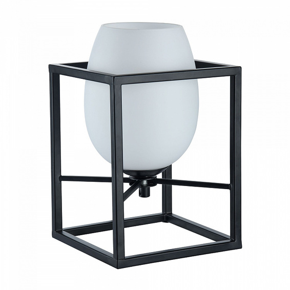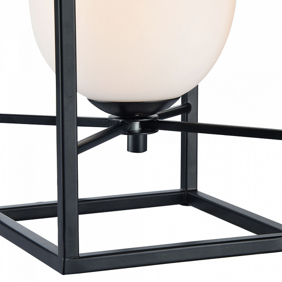 Каркас из металла покрыт черным цветом. Плафон в виде шара из белого матового стекла.