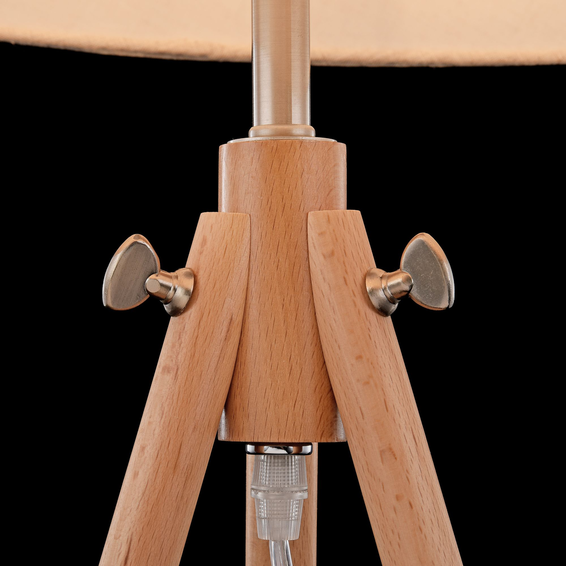 Штатив (тренога) из дерева. Абажур из хлопка бежевого цвета.
