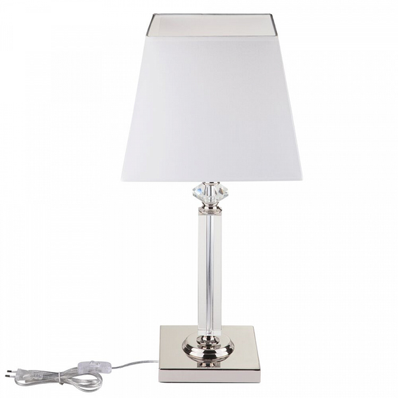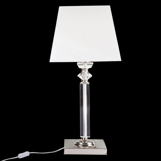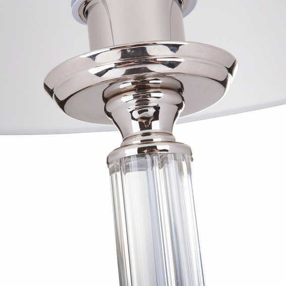 Арматура из металла. Декоративные элементы из стекла. Абажур из ПВХ покрыт белой тканью. Основа абажура - трапеция.