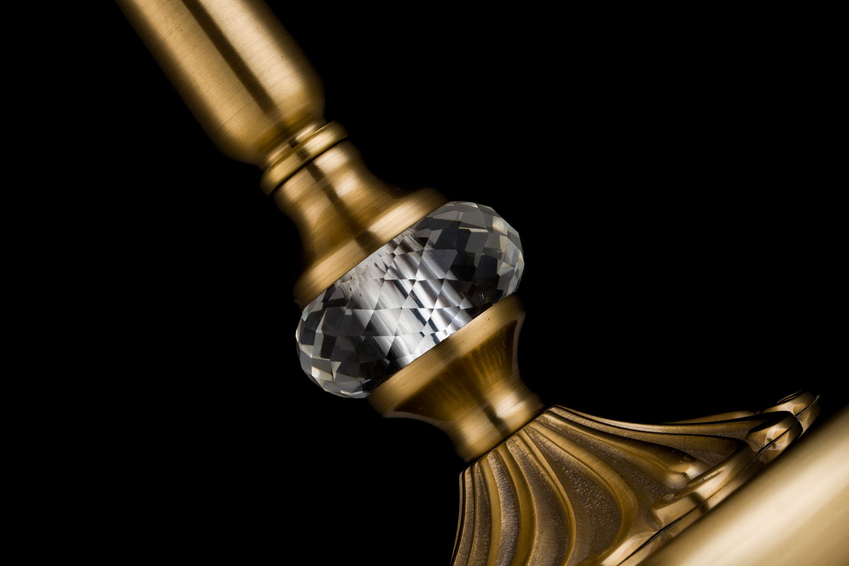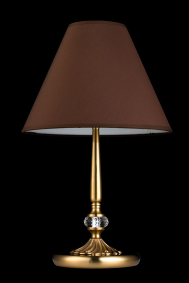 Арматура из металла. Абажур из ПВХ покрыт коричневой тканью.