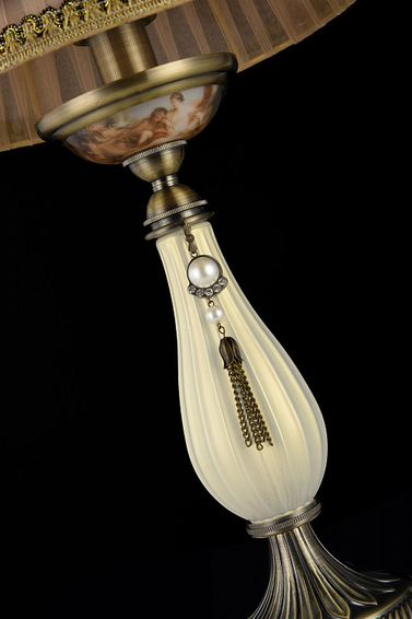 Арматура из металла. Жемчужина в основании и подвесках. Абажур из органзы.