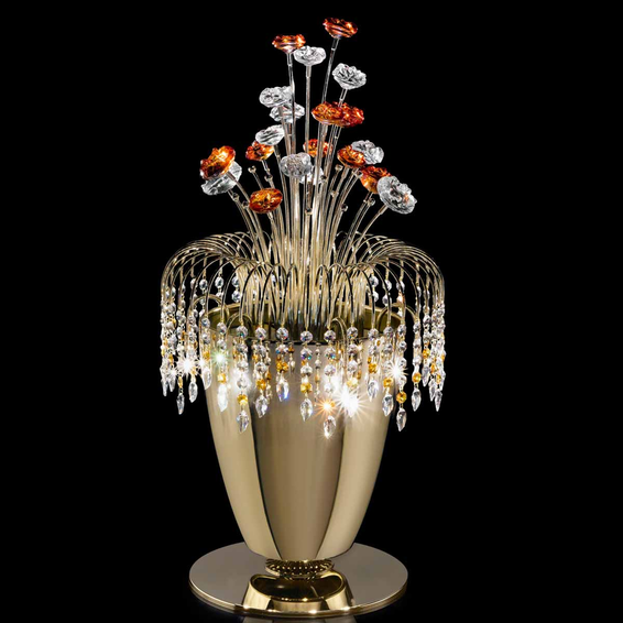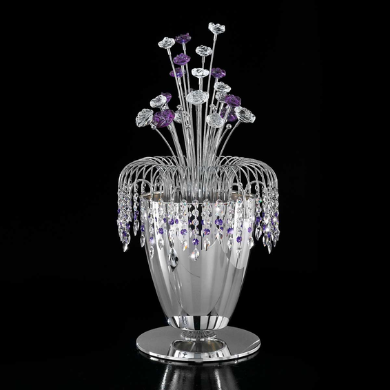 Каркас изготовлен из металла, декоративные элементы из прозрачного, фиолетового, янтарного стекла, с кристалами Swarovski. Доступен в в цвете светлое золото и хром.