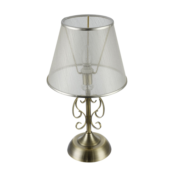 Арматура светильников зополнена завитками на рожках. Абажуры из полупрозрачной органзы выполнены в виде колокольчиков и обрамлены ободками из металла.