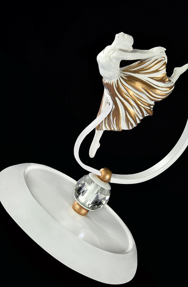 Арматура из металла. Декоративные элементы в виде балерин из полирезина и лент. Подвески из *хрусталя. Модель представлена в 2-х цветах. Цвет Белый с серебром - Артикул ARM222-11-N