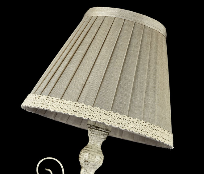 Патинированная арматура из металла. Абажур изо льна с натуральной кружевной тесьмой.