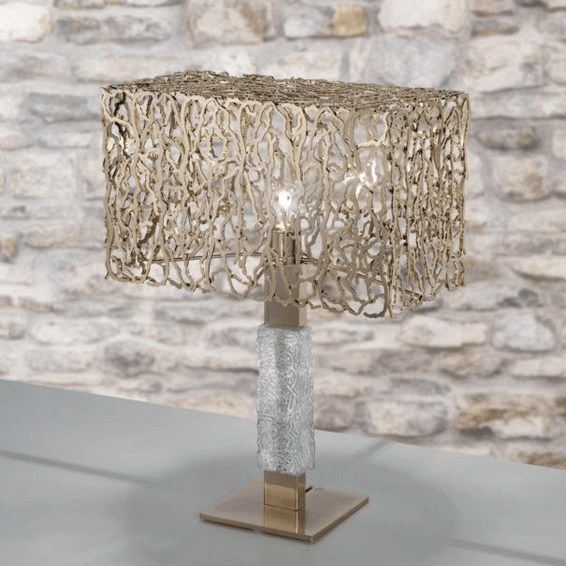 Каркас изготовлен из металла, абажур из металла в узорной ковке. Доступен в цветах по металлу: черный никель, сталь, бронза, медь, светлое золото.