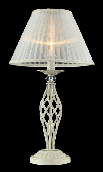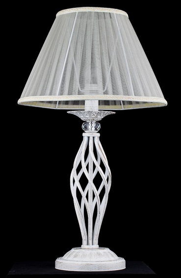 Арматура из металла. Абажур из плиссированной белой органзы. Подвески из *хрусталя.