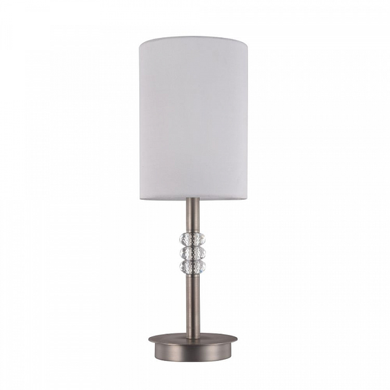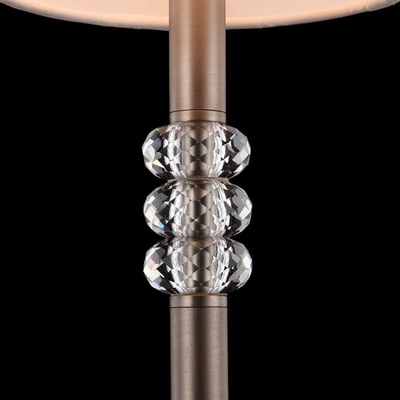 Арматура из металла. Рожки дополнены стеклянными элементами. Абажур из ПВХ покрыт тканью.
