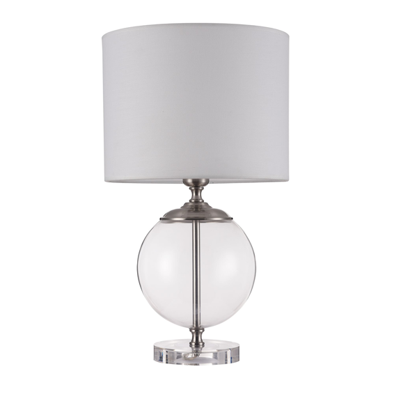 Арматура из металла. Основание дополнено элементом из дутого прозрачного стекла. Абажур из ПВХ покрыт тканью