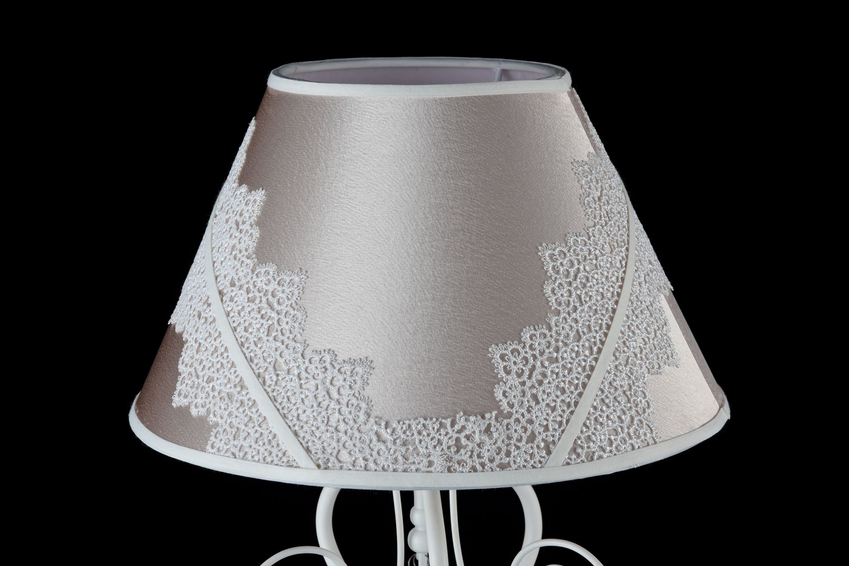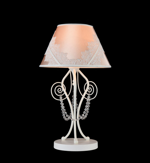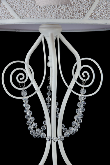 Арматура из металла. Абажур из ПВХ покрыт атласом и украшен кружевом. Подвески в виде бусин из стекла.