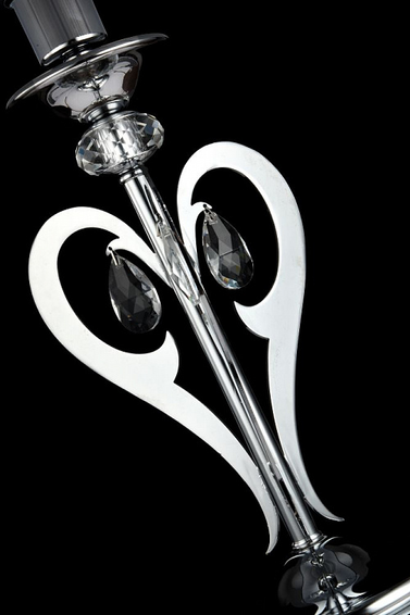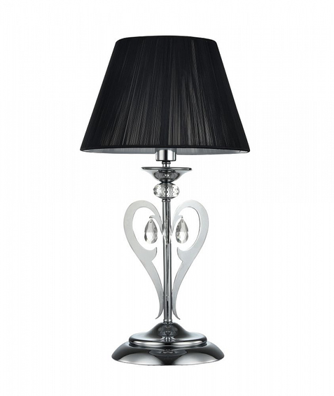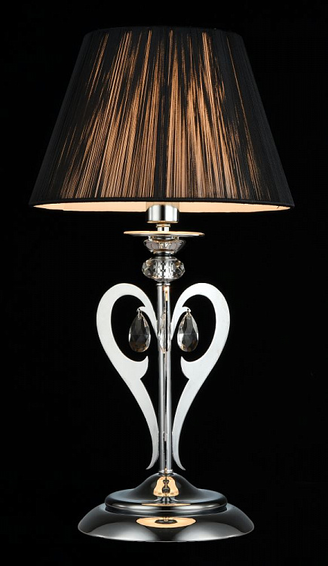 Арматура из металла. Абажур из ПВХ покрыт нитями черного цвета. Подвески прозрачного и черного цвета.