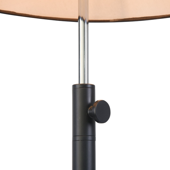 Каркас из металла. Телескопическая трубка позволят регулировать высоту основания. Абажур из ПВХ покрыт тканью.