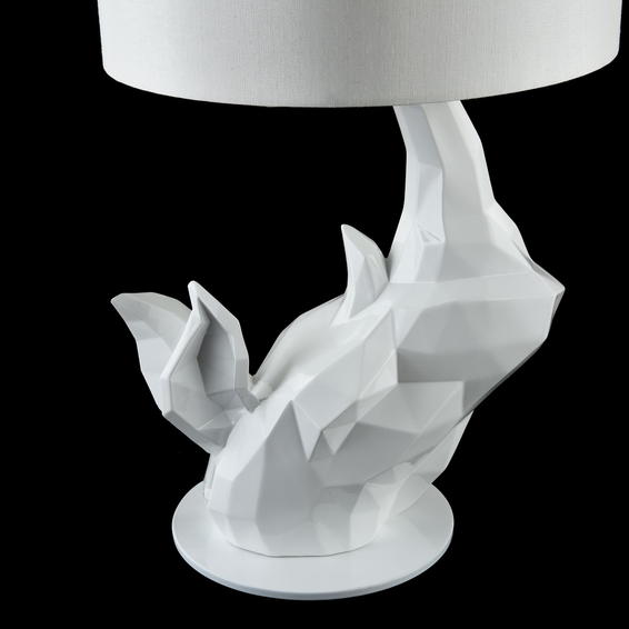 Арматура из полирезина. Основание в виде носорога. Вытянутый абажур из ПВХ покрыт тканью. Модель представлена в 2-х цветах. Чёрный цвет - Артикул MOD470-TL-01-B