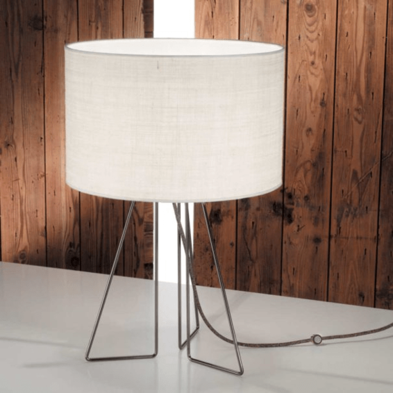 Каркас изготовлен из металла, абажур из ткани джут светлого и темного оттенка. Провод доступен в разных цветах. По цвету каркаса доступен в следующих цветах: сталь, черный никель, бронза, медь, светлое золото, ржавый.