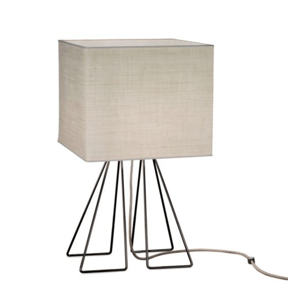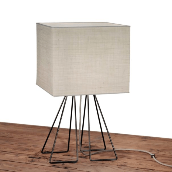 Каркас изготовлен из металла, абажур из ткани джут светлого и темного оттенка. Провод доступен в разных цветах. По цвету каркаса доступен в следующих цветах: сталь, черный никель, бронза, медь, светлое золото, ржавый.
