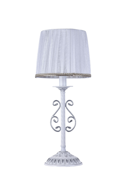 Арматура сделана из металла жемчужно-белого цвета, а абажуры - из белой органзы.