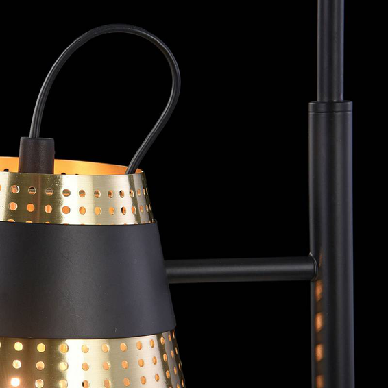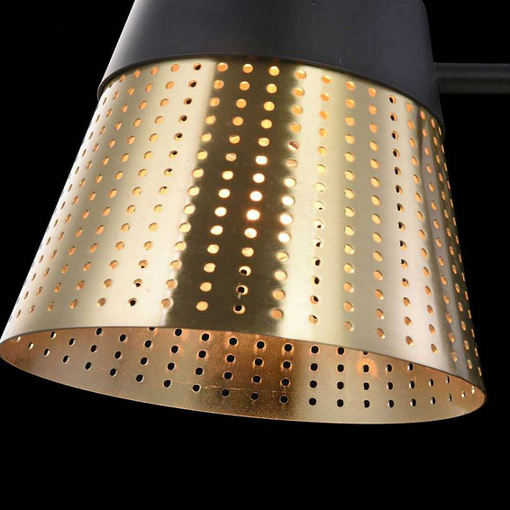 Арматура из металла, декоративный плафон из перфорированного металла с черными декоративными элементами.