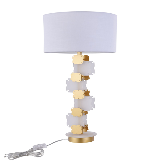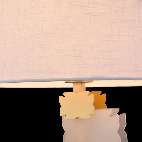 Каркас из металла. Декоративные элементы в основании из металла. Абажур из ПВХ покрыт тканью.