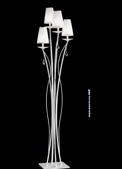 Каркас изготовлен из металла, декоративные элементы Swarovski Crystals. Абажуры из органзы. Доступен с абажурами из органзы белого цвета или цвета слоновой кости.