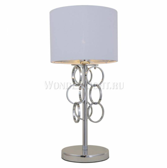 Арматура светильника сделана из металла,окрашена в хром.Плафон из ткани белого цвета,декоративные кольца из пластика,хромированного цвета.