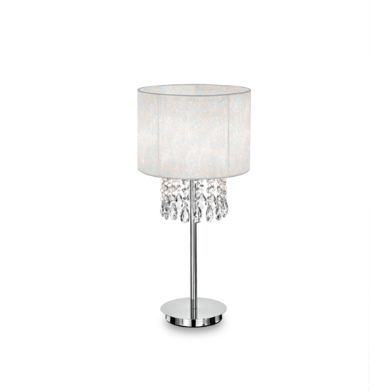 Арамтура в хроме. Рассеиватель из материала ПВХ с металлическим оттенком и нитями. Подвески из хрусталя с фацетом.