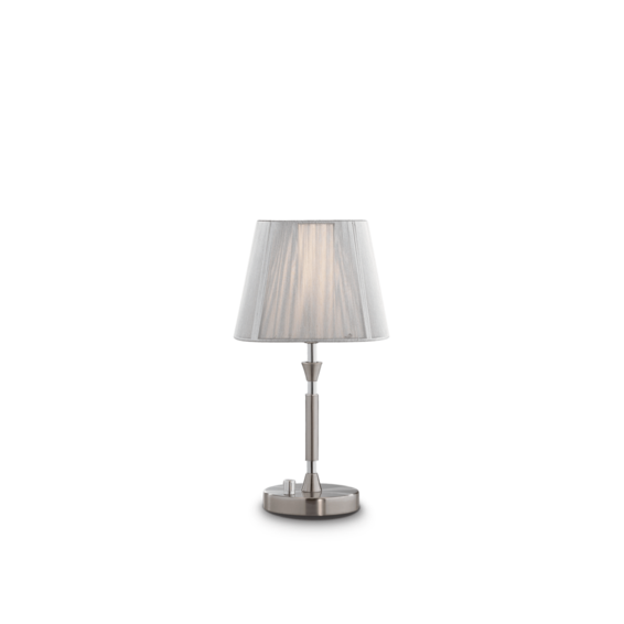 Арматура из металла с матовым никелевым покрытием. Декоративные изделия из хрусталя с фацетной огранкой. Абажур из материала ПВХ обтянутый серебристыми нитями.