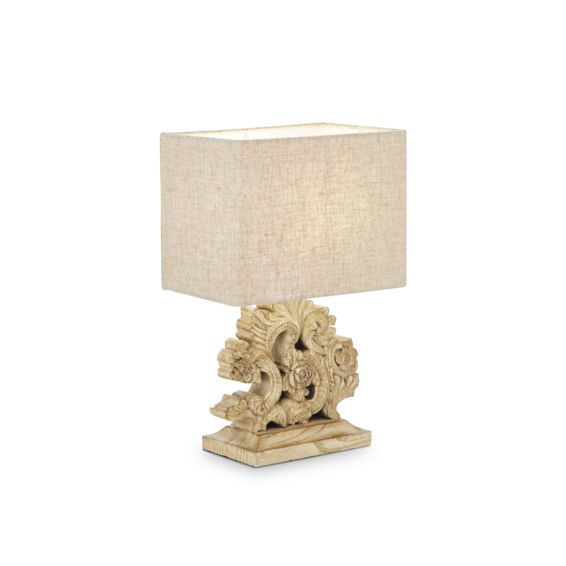 Арматура из смолы ручной работы, точное воспроизведение вырезного дерева. Абажур из материала ПВХ покрыт тканью канвы.