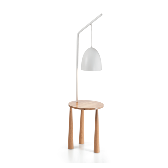 Арматура и рассеиватель из металла матовой краски. Опорная стойка из натурального выточенного дерева.