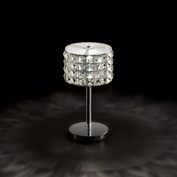 Арматура и детали из хромированного металла. Рассеиватель из квадратных хрустальных элементов с фацетом на боковой части.