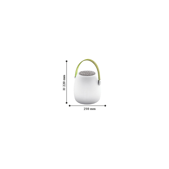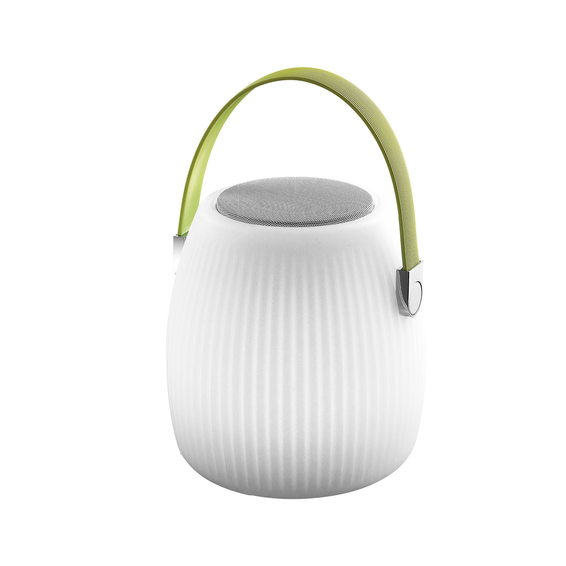 Каркас изготовлен из металла белого цвета, лампа LED RGB (меняет цвета), с Bluetooth динамиком, пультом управления цвета и звука, работает через провод и от батареек, мощность звука 10W.