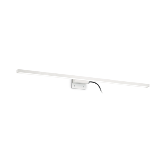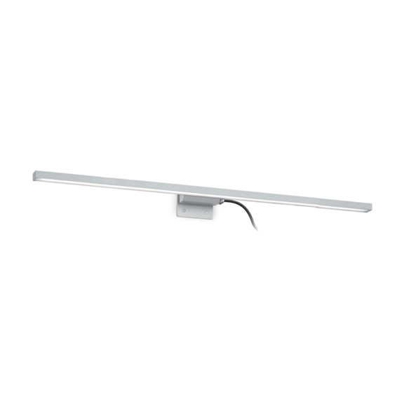 Корпус светильника из алюминия. Моделированная основа для прямого крепления к верхнему краю зеркала. Внешний драйвер и трос на виду. Прибор водонепроницаемый со степенью защиты IP44.