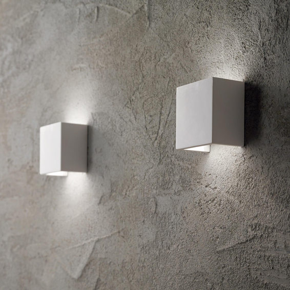 Основа из глянцевого металла. Корпус светильника полностью из гипса. Отражает свет как вверх так и вниз.