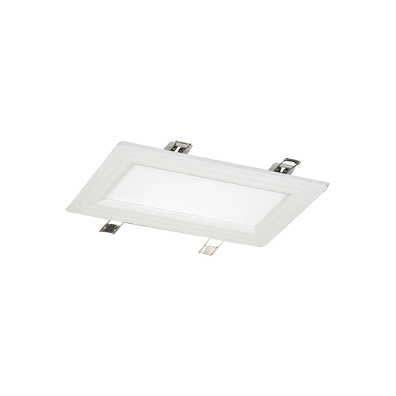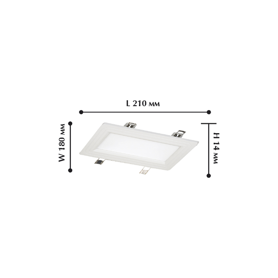 Арматура светильника из металла, белого цвета. Плафон из белого матового акрила. Светильник встраиваемый.