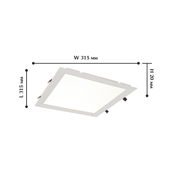 Арматура светильника из металла, белого цвета. Плафон из белого матового акрила. Светильник встраиваемый.