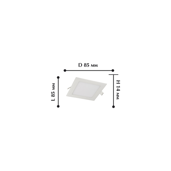 Арматура светильника из металла, белого цвета. Плафон из белого матового акрила. Светильник встраиваемый.