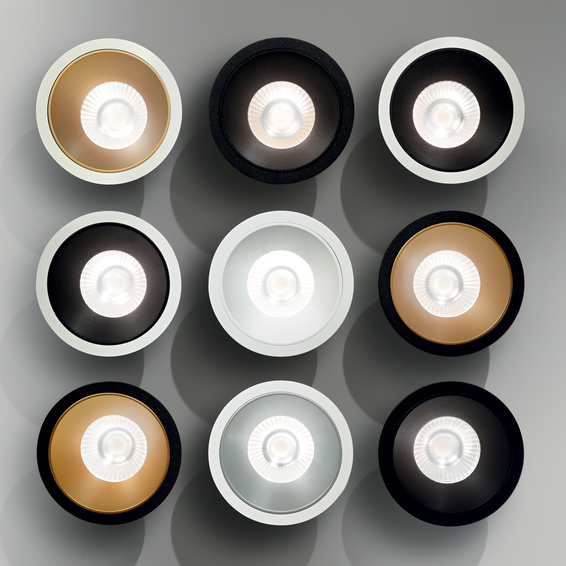 Встраиваемый спот из алюминия с круглой или квадратной шайбой, подходит для установки на потолки из гипсокартона. Покрытие матовое хромовое, матовое белое, матовое чёрное или матовое золотое. ЛЕД с технологией COB, доступен в температуре цвета 3000К.