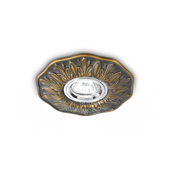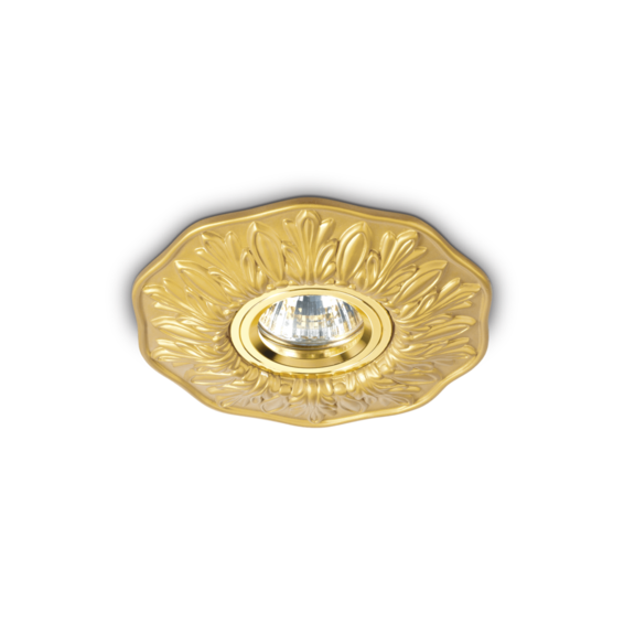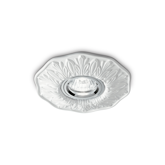 Встраиваемый неподвижный спот, арматура из металла. Декоративный внешний элемент из гипса в коричневом, латуневом или белом матовом цвете.