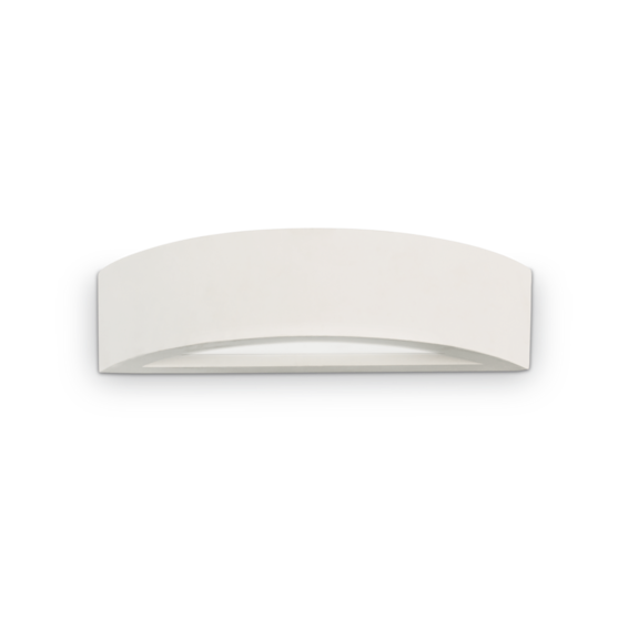 Корпус светильника из белого гипса. База из окрашенного белого металла. Нижний рассеиватель из прозрачного матового стекла.Рассеиватель освещает как вверх, так и вниз.