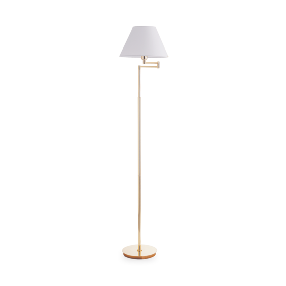Арматура из металла покрытого матовой латунью или хромированной. Подвижный рожок регулируемый. Рассеиватель из материала ПВХ покрыт тканью.