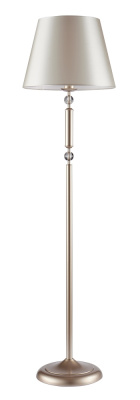 Каркас изготовлен из металла, окрашенного в цвет золота, абажур из пластика и текстиля бежевого цвета.