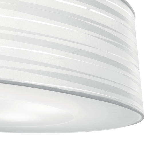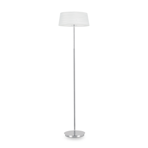 Арматура из хромированного металла. Абажуры из прозрачного материала ПВХ обтянуты лентами лёгкой тканью белой. Рассеиватель из прозрачного стекла пескоструйной обработки.
