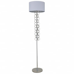 Арматура светильника сделана из металла,окрашена в хром.Плафон из ткани белого цвета,декоративные кольца из пластика,хромированного цвета.