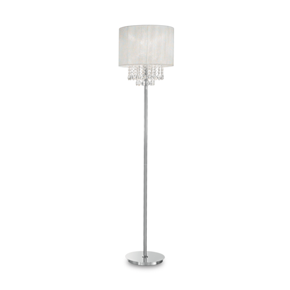 Арамтура в хроме. Рассеиватель из материала ПВХ с металлическим оттенком и нитями. Подвески из хрусталя с фацетом.