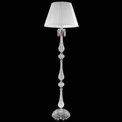 Арматура светильника сделана из металла,с хромированным покрытием. Подвесные детали из прозрачного хрусталя.Плафоны из белого текстиля.Выключатель на проводе.