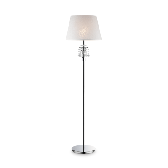 Арматура из хромированного металла. Абажуры из материала ПВХ, покрыт тканью с рельефными цветами. Бобеш и подвески из хрусталя с фацетом.