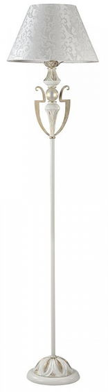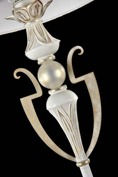 Арматура из металла. Декоративные элементы: жемчужина в основании и подвесках. Абажур из ПВХ покрыт тканью c узором.